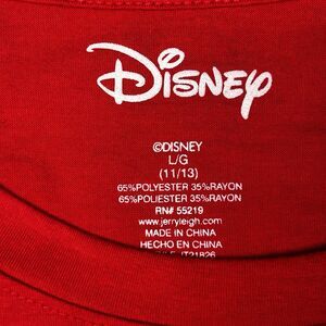 The Disney Girls Size Large 11/13 Red Bow Minnie Mouse Tunic Tee is a vibrant and stylish t-shirt featuring a graphic print of Minnie Mouse. This short sleeve tunic has a crew neck and a pullover closure, making it easy to wear and comfortable for girls in size large. The red color and classic Minnie Mouse character make it a perfect choice for young fans of the beloved Disney character. Made from a blend of polyester and rayon, this machine washable shirt is a fun and colorful addition to any girl's wardrobe.