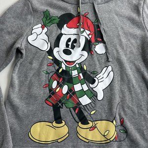 Disney Girl’s Sweatshirt Hoodie Micky Mouse Santa Christmas Long Sleeve Size M.