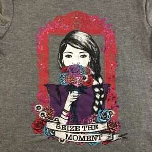 D-Signed Disney Girls Top Coco Gray Hi-Lo Ruched Sleeve Sheer Hem Detail