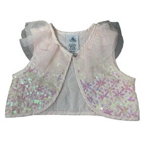 Disney Girls Light Pink Tulle Flutter Sleeve Cropped Sequined Snowflakes Vest Size 9/10