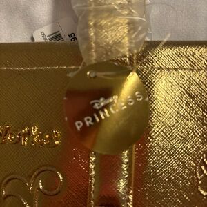 Elevate your style with the Disney Gold Metallic Tote Bag, featuring a luxurious textured finish that adds a touch of sophistication to any outfit. This structured tote is designed with a spacious interior, perfect for carrying your daily essentials. The metallic gold color and elegant design make it a standout accessory for any occasion. Bath and Body Works Disney Princess Gold Tote NWT - 12” H x 17” W x 6” - handle drop 26” - interior lining is beige with princess logos.