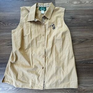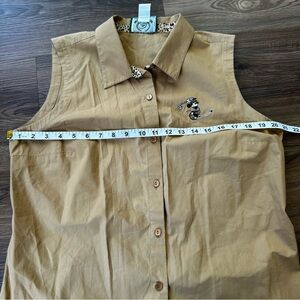 Disney Golf Collection Womens Button Sleeveless Shirt Large Brown Mickey Mouse