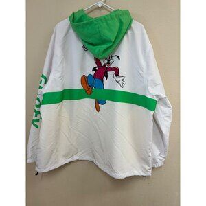 Disney Goofy Character Windbreaker Jacket Green/Yellow/White Adult Size XXL Polyester W/ Hood & Adjustable Drawstrings