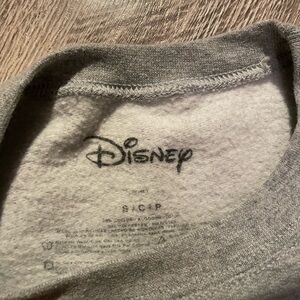 Classic Disney characters in Christmas attire on a cozy gray sweater.
