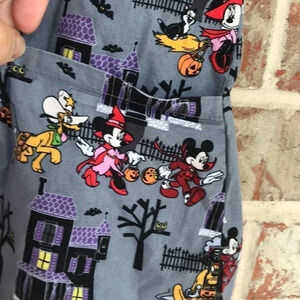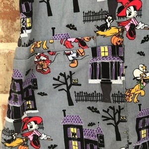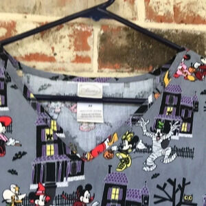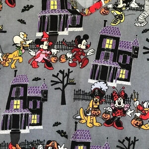 Disney Gray Micky Minnie Pluto Halloween Scrub Top