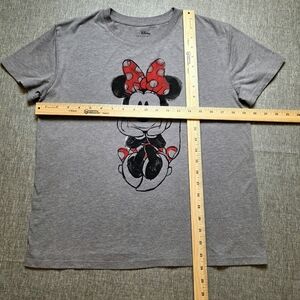 Disney Gray Minnie Mouse Red Bow White Pockadots Short Sleeve T Shirt W Size L