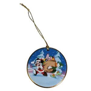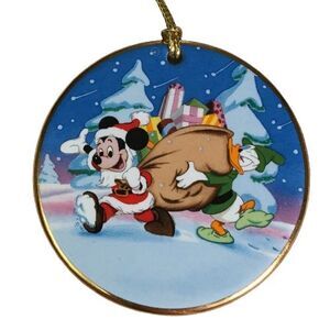 Disney Grolier Tis the Season Santa's Helpers Ornament Mickey Mouse and Donald Duck carrying a sack of presents. Measures 2.5" in diameter. Please see pictures.