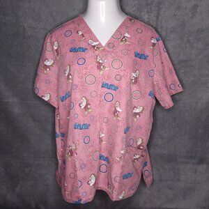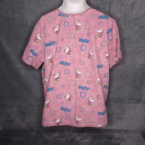 Disney Grumpy Pink Scrub Top XL Two Pockets Lightweight Uniform Top