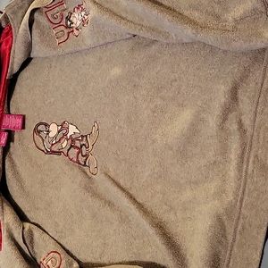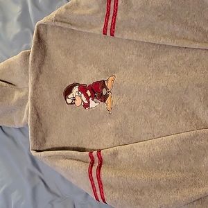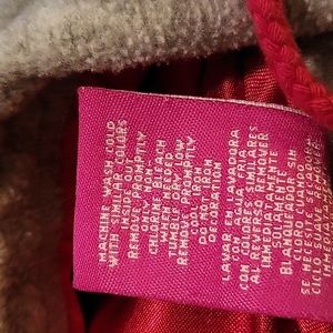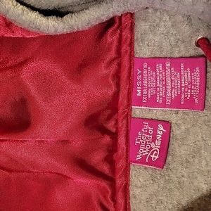 The Wonderful World of Disney Grumpy gray and red zipper jacket. 2 pockets. Satin lined hood with pom-pom ties. Excellent condition. Measurements, size, and care tags in photos.