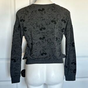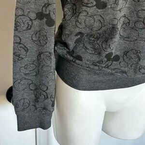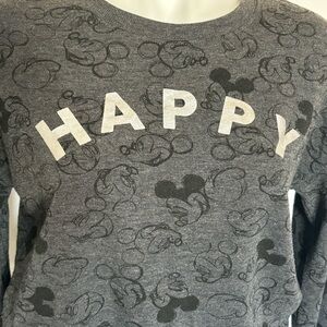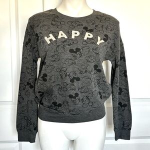 Disney HAPPY Silver Gray Black Mickey Crew Pullover Light Sweatshirt S