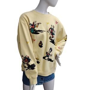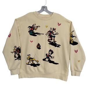Disney Halloween Graphic Sweatshirt Size Large Crewneck Pale Yellow