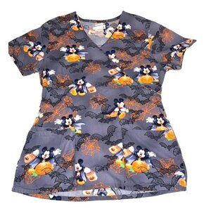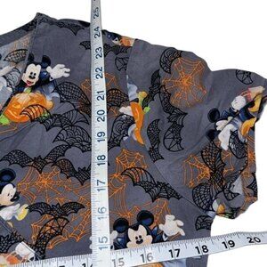 Disney Halloween Mickey Mouse Scrub Top XS Gray Cotton V-Neck Short Sleeve With
