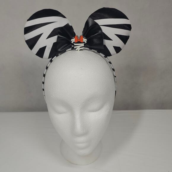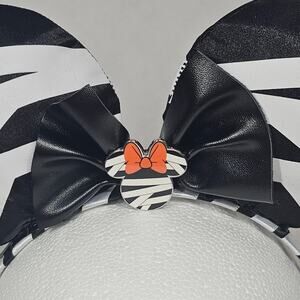 This is a pair of NEW, NEVER USED Disney made (not Disney Parks) Halloween Minnie Mouse Ears / Headband in a black and white skeleton theme. The black bow indicates these are Minnie Mouse, rather than Mickey Mouse ears. A Minnie medallion on the bow is an extra special touch. The ears are very lightweight and will be great for wearing this Fall around Disneyland or Walt Disney World. They would be perfect to wear to Mickey's Not So Scary Halloween Party, too!