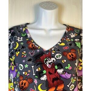Disney Halloween Spooky Pumpkins Mickey & Minnie Squad Nurse Doctor Scrub Sz L
