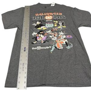 Disney Halloween T Shirt Adult M Grey Parks Parade Donald Mickey Goofy Vampire Haunted House Trick or Treat Witch