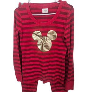 Disney Hanna Andersson Adult Womens Red Stripe Pajamas Gold Mickey Head Size S