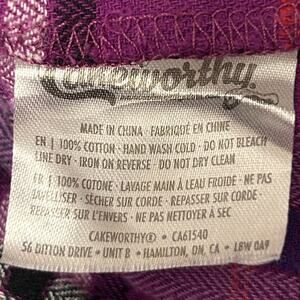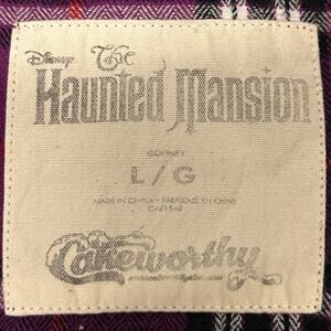 Disneyland The Haunted Mansion Beware of Hitchhiking Ghosts Flannel Button Front Shirt Walt Disney Cakeworthy Plaid Purple Womens Large Button Up Button Down