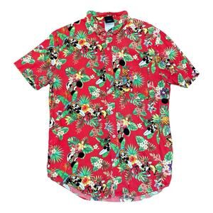 Disney Hawaiian Shirt Men's Size Large Mickey Minnie Mouse Red Short Sleeve