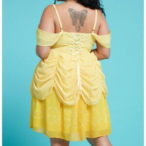 Hot Topic Her Universe Disney Beauty And The Beast Belle Princess Cold Shoulder Dress Plus Size. Size XL. Small ink mark on front of dress, see last photo. Otherwise excellent used condition.