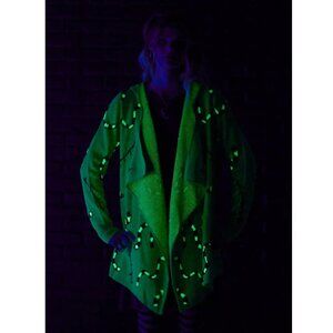 Please note: For the full glow-in-the-dark effect, please leave garment out in a brightly lit area for approximately 7 to 10 minutes.