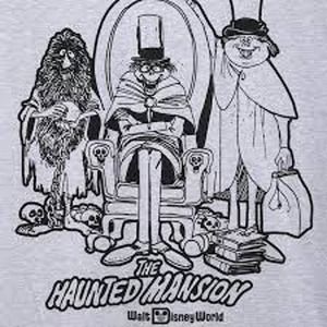 It appears that Ezra, Gus and Phineas have found a final resting place on this Haunted Mansion ”Hitchhiking Ghosts” t-shirt. Fun and fiendish vintage style line art and lettering plus the classic Walt Disney World logo bring the ghosts to life, so to speak. The comfy feel of the tee is heavenly. Maybe that’s why the ghostly trio is smiling.