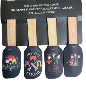 Disney Hocus Pocus 4 Pack Spatula Set Black Front White Back Silicone with Wooden Handle