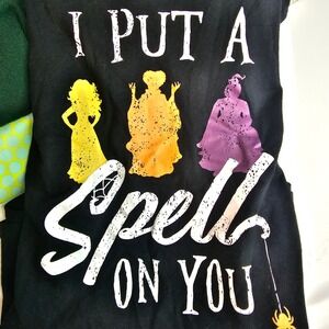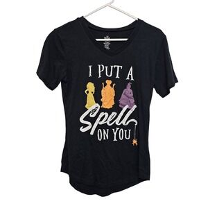 Disney Hocus pocus adult graphic T-shirt size medium short sleeve Halloween, 60% cotton 40% polyester, black, Spirit Halloween, women's, I put A spell On you t-shirt, summer, spring, fall, casual.