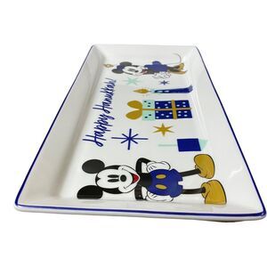 Disney Holiday Mickey & Minnie Happy Hanukkah Serving Tray Dish Dreidel Candle