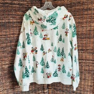 Disney Hoodie 1X Cream Zip Up Sweatshirt Mickey Donald Duck Chipmunks Christmas
