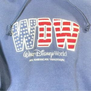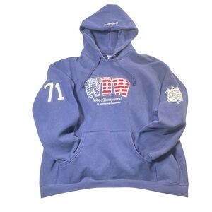 Disney Hoodie Unisex XXL Blue American Flag Embroidered WDW EST 1971 Pullover