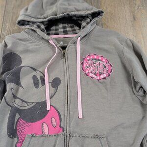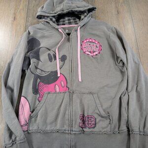 Disney Hoodie Womens XL Gray Full Zip Long Sleeve Pink Mickey Mouse Graphic