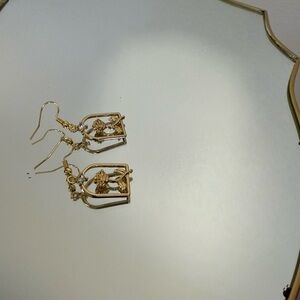 These elegant gold birdcage earrings add a touch of whimsy to any outfit. Perfect for any occasion.