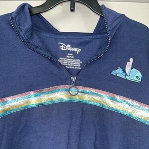 Disney JRs Women’s Blue Lilo and Stitch Blue Sparkle Pull Over T-Shirt Sweatshirt Quarter Zip size Medium (JRs 7-9). T-shirt material. Ask me anything! #Disney #LiloandStitch #Stitch #Outdoor #Sparkle