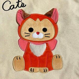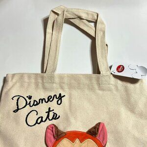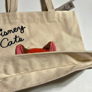 This is a new with tags canvas tote bag from Japan. It’s from the Disney Cats collection and it has Dinah embroidered on the front with soft fuzzy fabric details. The inside is lined with images of different Disney cats such as Marie, Mochi, Cheshire Cat, Figaro, and more. It has two open pockets inside.