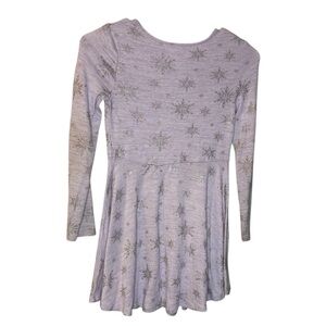 Charming purple dress with silver snowflake patterns. Long sleeves and a flared skirt add elegance. Inspired by Disney Frozen. Girls size 7.