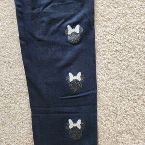 Adorable black leggings featuring sparkling Minnie Mouse head logos on the sides of each leg โ perfect for any little Disney fan!