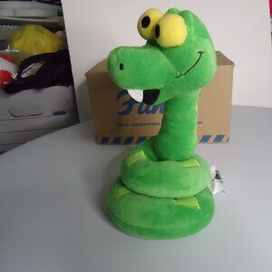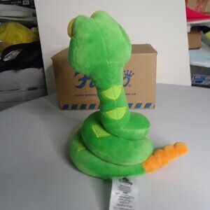 The Disney Parks Green Rattle Snake Kaa Jungle Book Plush is a 9" stuffed toy based on the character from the Jungle Book movie. Produced by Disney in 2021, this plush toy is officially licensed and features Kaa, the friendly jungle snake. Made in China, this collectible item is a must-have for fans of Disney's Jungle Book franchise, adding a touch of charm and nostalgia to any Disney collection.