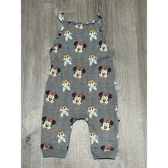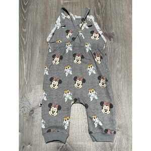 Adorable Disney Junior romper featuring Minnie Mouse and Daisy Duck all over a soft gray background. This sleeveless jumpsuit is made with cozy knit fabric and features button strap closures for easy dressing. Perfect for playtime or lounging, and in excellent pre-owned condition with no stains, holes, or signs of wear. Brand: Disney Junior Character: Minnie Mouse, Daisy Duck Size: 3T Color: Gray with Allover Character Print Sleeveless with ruffle detail Material: Cotton blend Smoke-free home Ships in one business day