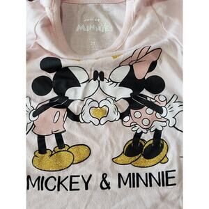 Disney Junior Pink Mickey & Minnie Kissing Hearts Short Sleeved Shirt - Size 2T