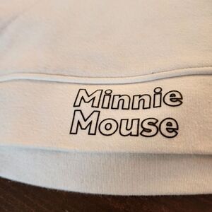 Disney Junior Minnie Mouse hoodie, white with black graphics, kangaroo pocket, long sleeves, hood size 3T