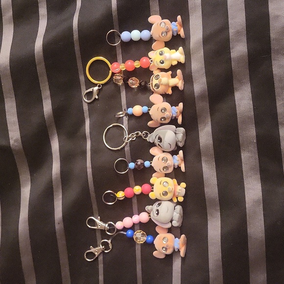 price is per keychain characters: Roo Eeyore Pooh Roo Eeyore Roo Tigger Rabbit Roo these are flocked (fuzzy)