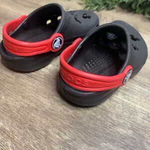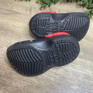 Introducing the delightful Disney Kids Crocs featuring beloved Mickey Mouse, perfect for little feet! These Crocs come in a versatile black color with charming Mickey Mouse-shaped cutouts, adding a fun touch to your child's wardrobe. Designed for comfort and convenience, they're made from durable Croslite material that offers lightweight cushioning and is easy to clean. The red heel strap ensures a secure fit while allowing for easy on and off, making them ideal for both indoor and outdoor adventures. Available in Size 4-5, these Crocs are a must-have for any young Disney fan. Treat your little one to a magical combination of comfort and character with these stylish Mickey Mouse Crocs!