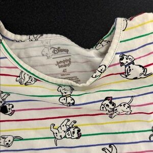 Charming tee with Dalmatian print and colorful stripes. Fun and playful design.
