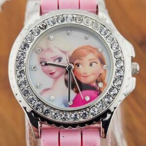 Disney Kids Frozen Analog Watch Pink Pastel Anna Elsa Princess Jewels Gems