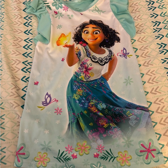 Charming Disney nightgown featuring a vibrant character design. Soft blue and white fabric with colorful floral accents. Perfect for bedtime adventures.