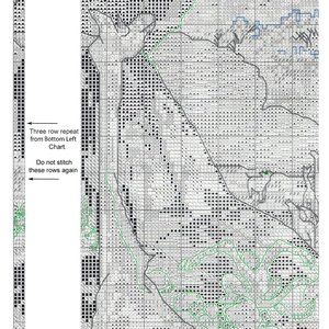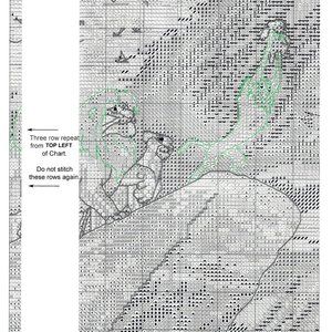 Final size of picture is 16"x12" when done on 18 count Aida cloth. Pattern includes full, 1/4, 3/4 stitches, french knots, and back stitching.