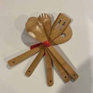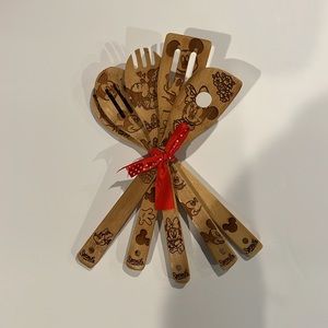 Mickey and Minnie Mouse fans must have set for the kitchen. You get a hanging towel, 2 silicon whisks, a Minnie print dish drying mat and a bamboo cooking utensil set.