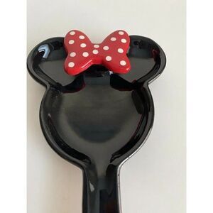 Disney Kitchen Minnie Mouse Figure Spoon Rest Ceramic Red Black bow New.