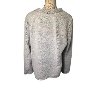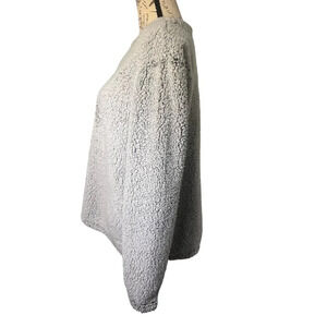 Disney, L, nightmare before Christmas satin skeleton face appliqué snowflakes on a lightweight gray Sherpa long sleeve sleep shirt/sweatshirt