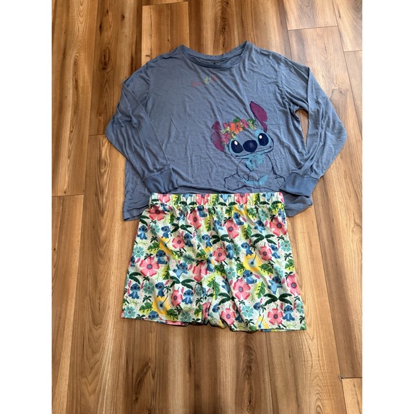 Disney LILO Stitch Pajama Set PJs Shorts XL Blue